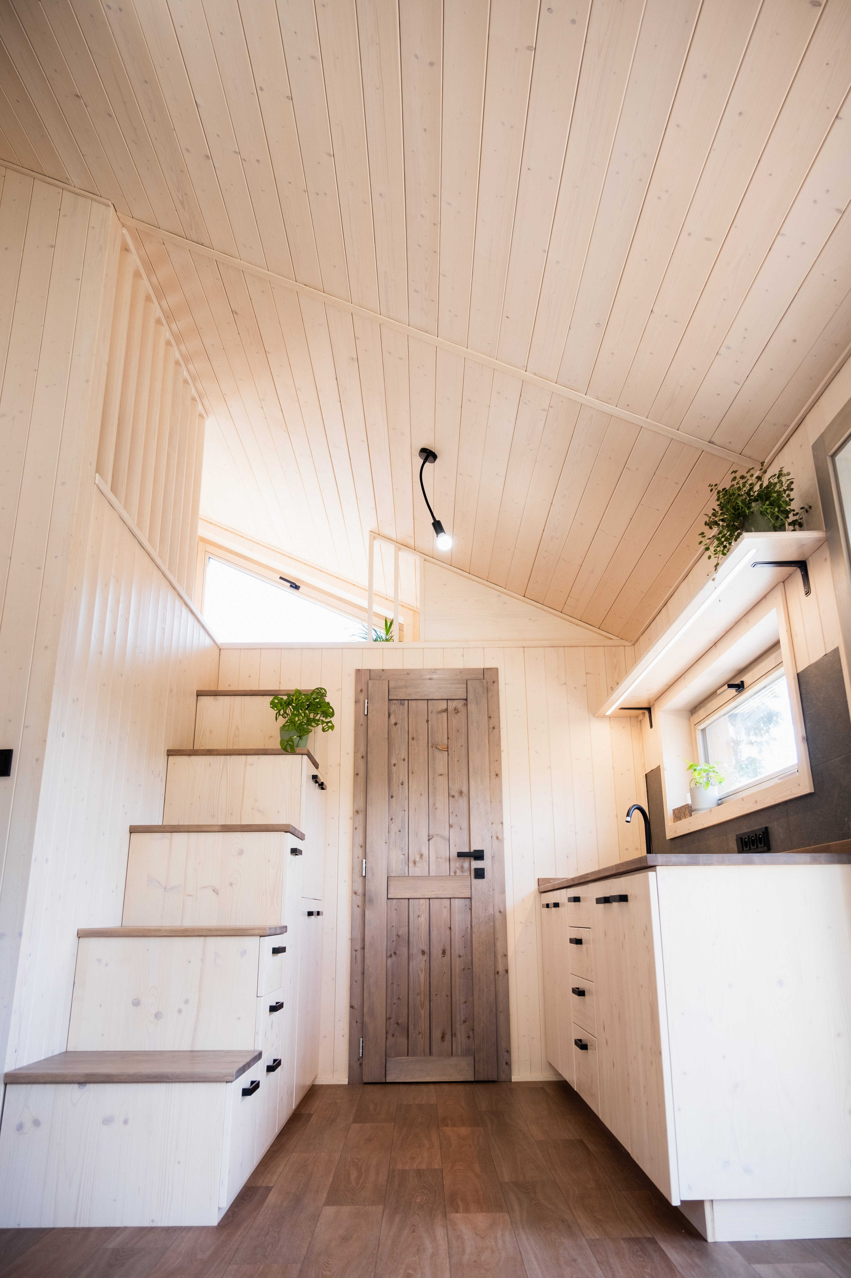 Tiny house Sedlák – klasika se sedlovou střechou a spoustou světla. Velká okna do krajiny, chytrá schodoskříň, útulný loft na spaní, plnohodnotná koupelna a litinová kamna Jøtul pro večerní pohodu. 🏡…