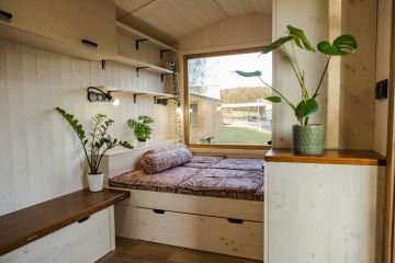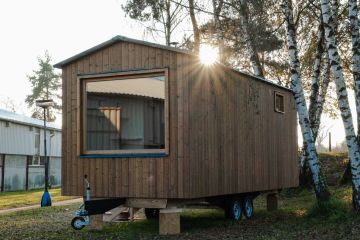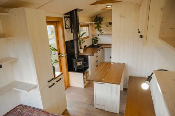 Sedlovka - Maringotka nebo Tiny House? Tento model spojuje klasický vzhled s moderními prvky. Díky sedlové střeše a velkému oknu nabízí nejen esteticky přitažlivý design, ale také více prostoru a přirozeného světla. Ideální pro celoroční užívání, Sedlovka může být vybavena soběstačným OFF-GRID systémem, což ji činí perfektní volbou pro ty, kteří hledají komfortní zázemí pro nezapomenutelné zážitky v přírodě