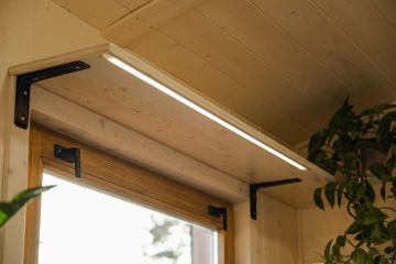 Finálně pak obložíme stěnu smrkovou palubkou (v rozšířené variantě lze použít Thermowood).