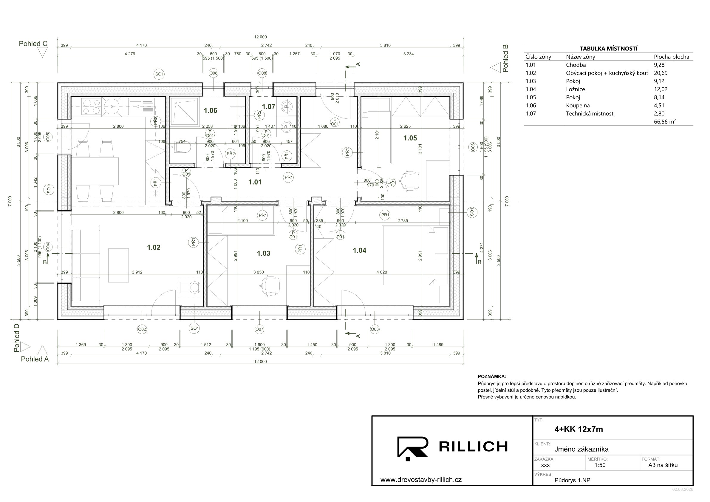 Vnější rozměry: 12000x7000mm