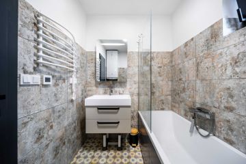 Kompletní koupelna s keramickou dlažbou a s elektrickým podlahovým vytápěním