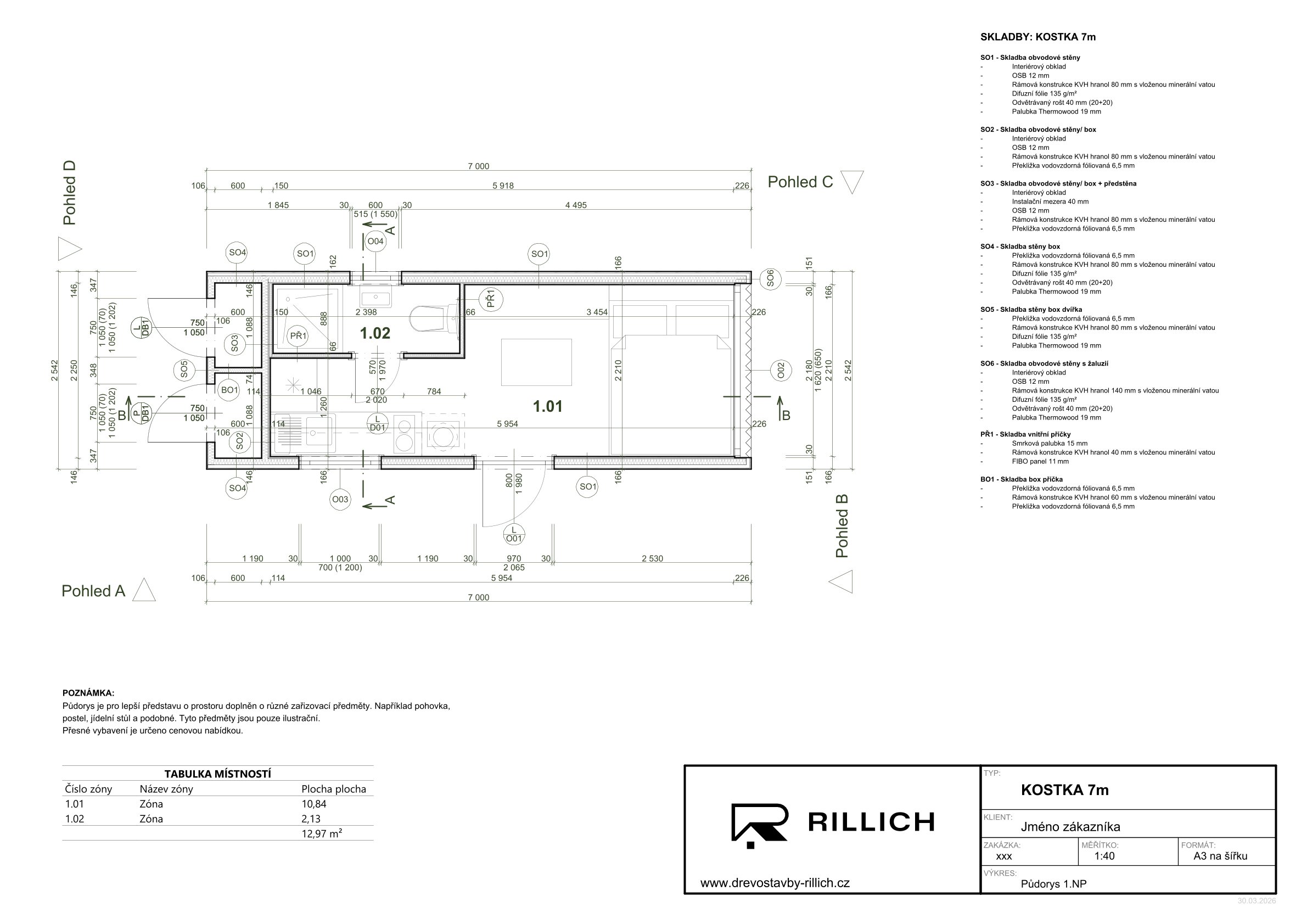 Rámová konstrukce je z exteriéru zabalena do paropropustné fólie (150g/m2).