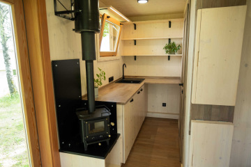Tiny house Kostka 7 m je malý designový dům s velkým výhledem – jednoduchý kvádr s plochou střechou, která může sloužit jako terasa nebo zelená střecha. Uvnitř najdete chytrý, minimalistický interiér z přírodních materiálů, který skvěle funguje jako glamping, ateliér nebo únikové místo v přírodě.